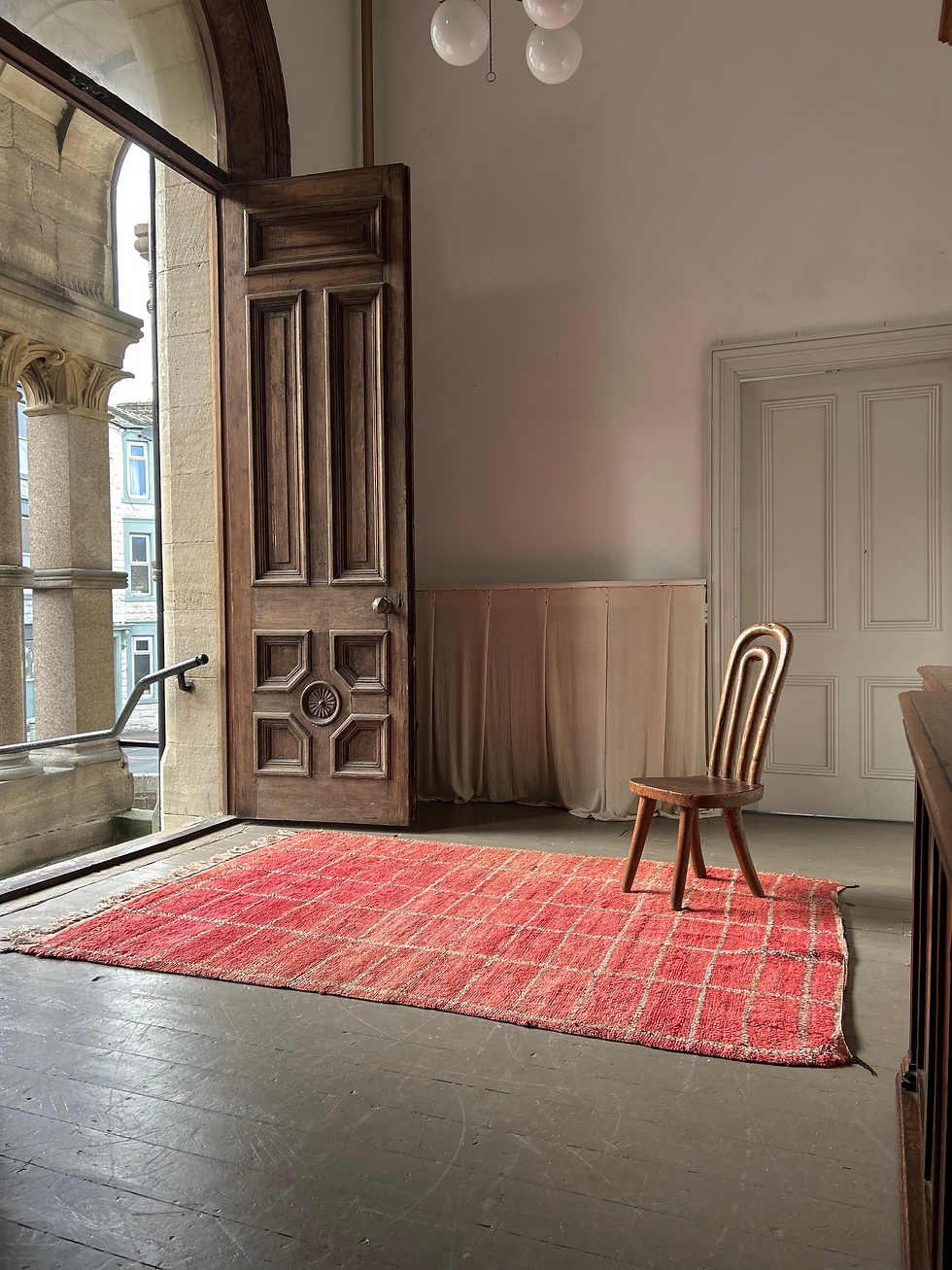 LARGE RARE MADDER RED MOROCCAN TRIBAL RUG